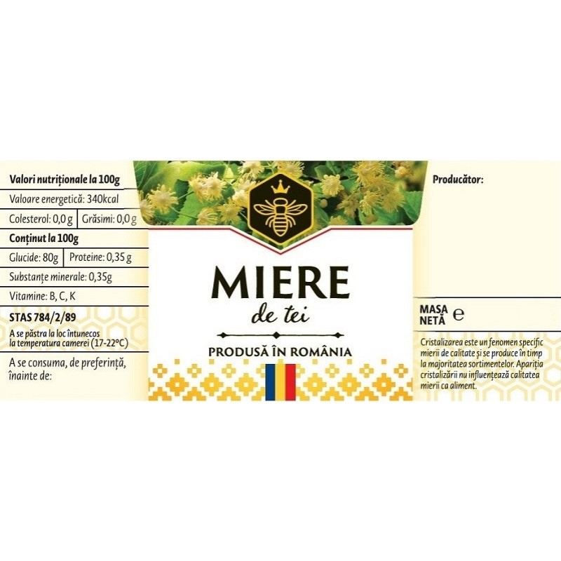 Pot fi personalizate de catre apicultor cu numele si datele de contact.